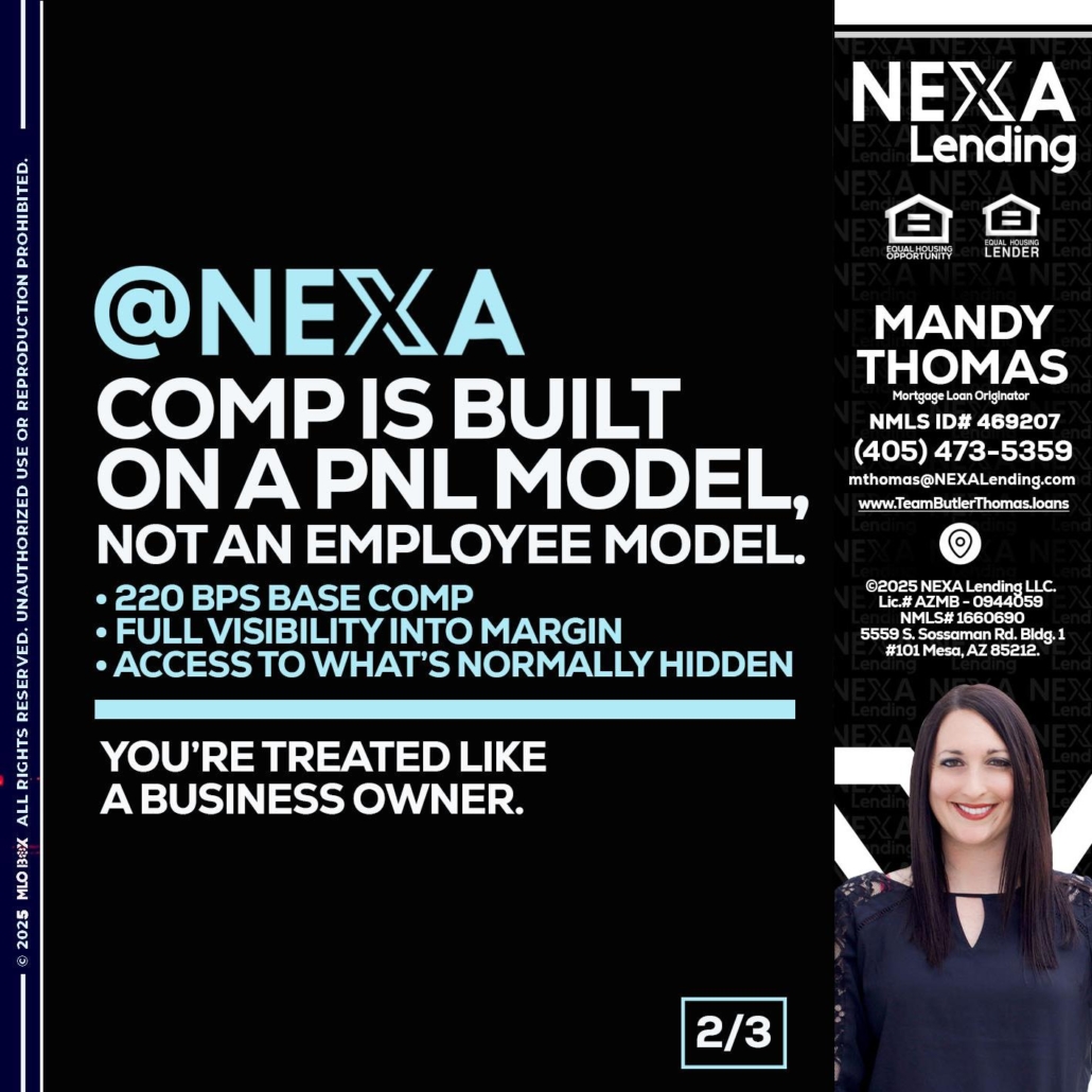 Hi, my name is Mandy Thomas. I’m a Loan Officer with NEXA Lending LLC., offering personalized mortgage solutions, fast customized quotes, great rates and service with integrity.