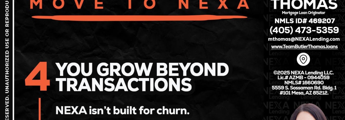 Hi, my name is Mandy Thomas. I’m a Loan Officer with NEXA Lending LLC., offering personalized mortgage solutions, fast customized quotes, great rates and service with integrity.