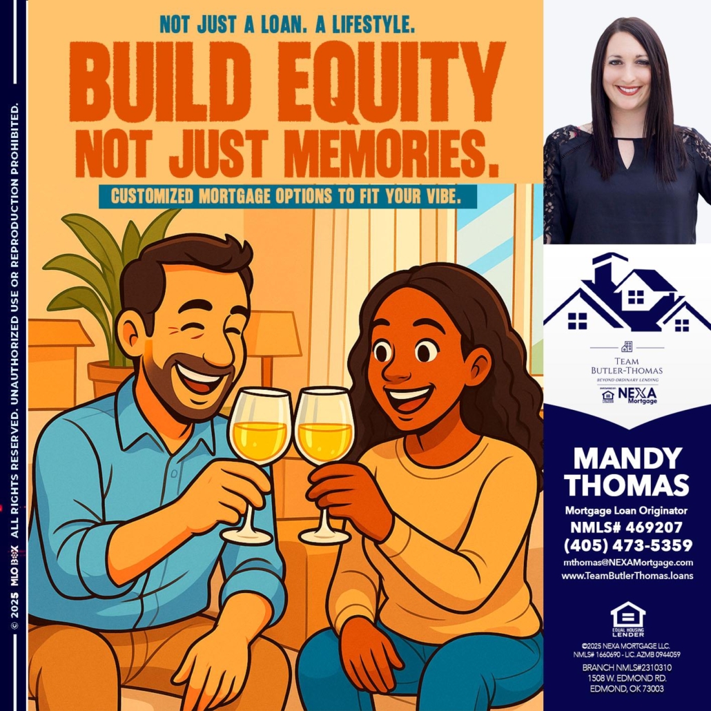 BILD EQUITY - Mandy Thomas -Branch ManagerHi, my name is Mandy Thomas. I’m a Loan Officer with NEXA Mortgage LLC., offering personalized mortgage solutions, fast customized quotes, great rates and service with integrity.