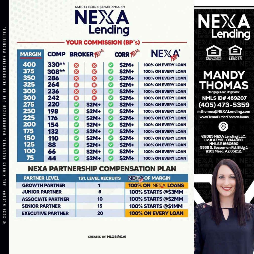 Hi, my name is Mandy Thomas. I’m a Loan Officer with NEXA Lending LLC., offering personalized mortgage solutions, fast customized quotes, great rates and service with integrity.