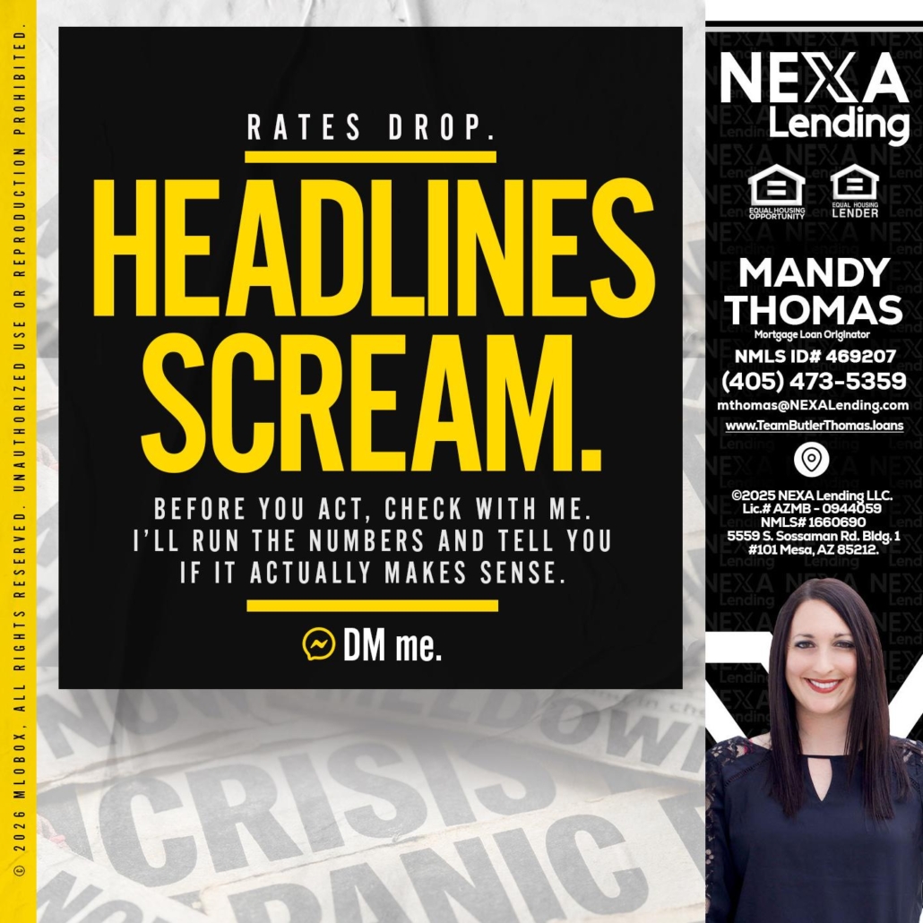 Hi, my name is Mandy Thomas. I’m a Loan Officer with NEXA Lending LLC., offering personalized mortgage solutions, fast customized quotes, great rates and service with integrity.