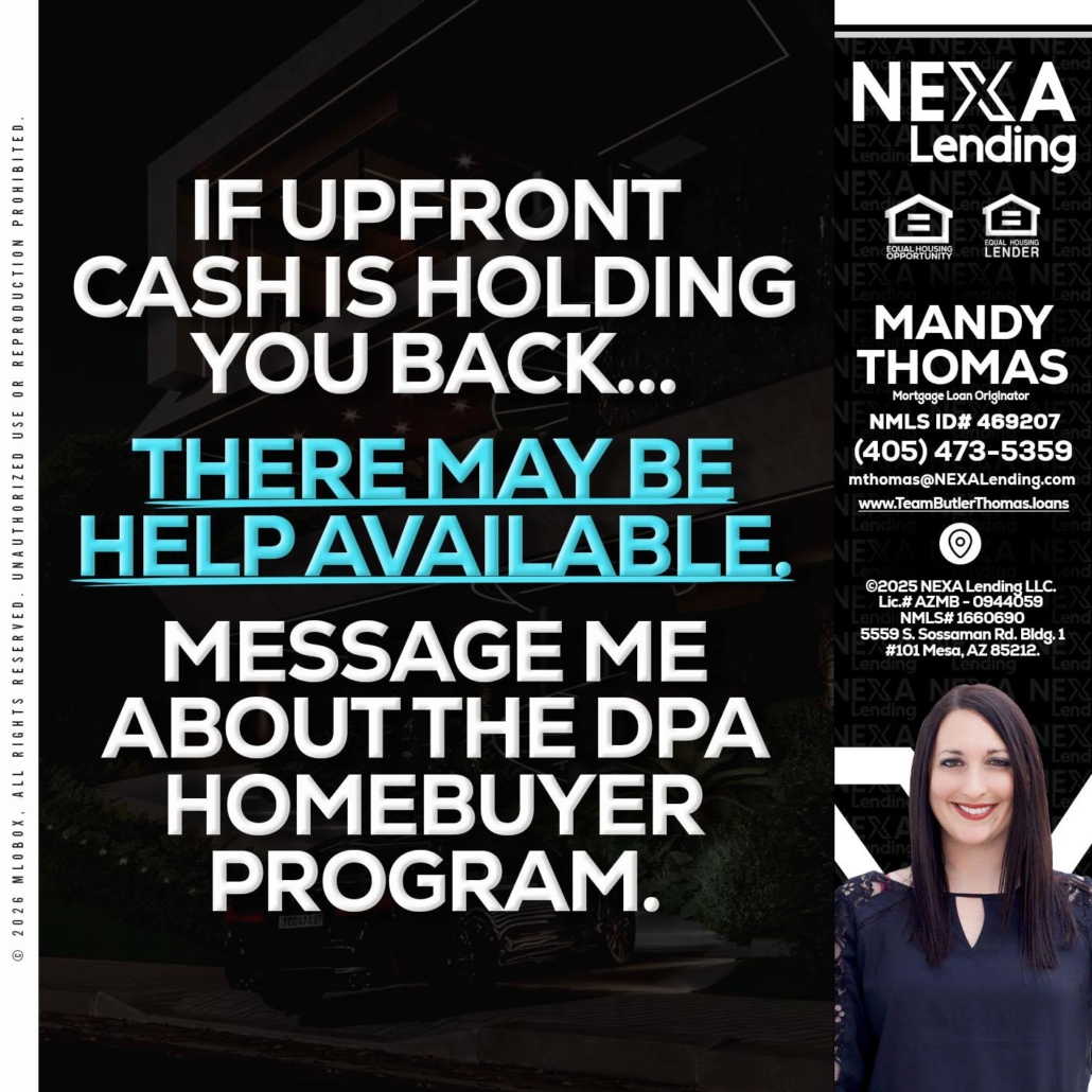 Hi, my name is Mandy Thomas. I’m a Loan Officer with NEXA Lending LLC., offering personalized mortgage solutions, fast customized quotes, great rates and service with integrity.