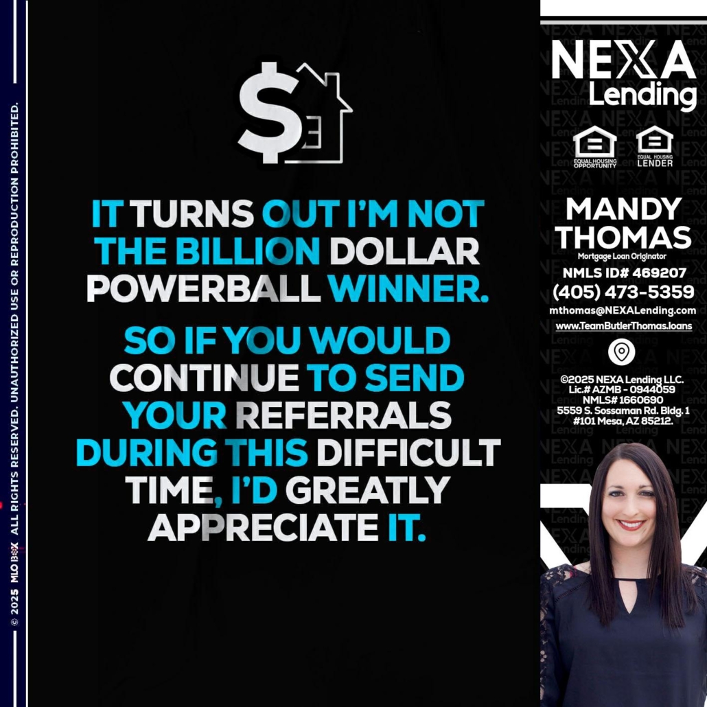 Hi, my name is Mandy Thomas. I’m a Loan Officer with NEXA Lending LLC., offering personalized mortgage solutions, fast customized quotes, great rates and service with integrity.