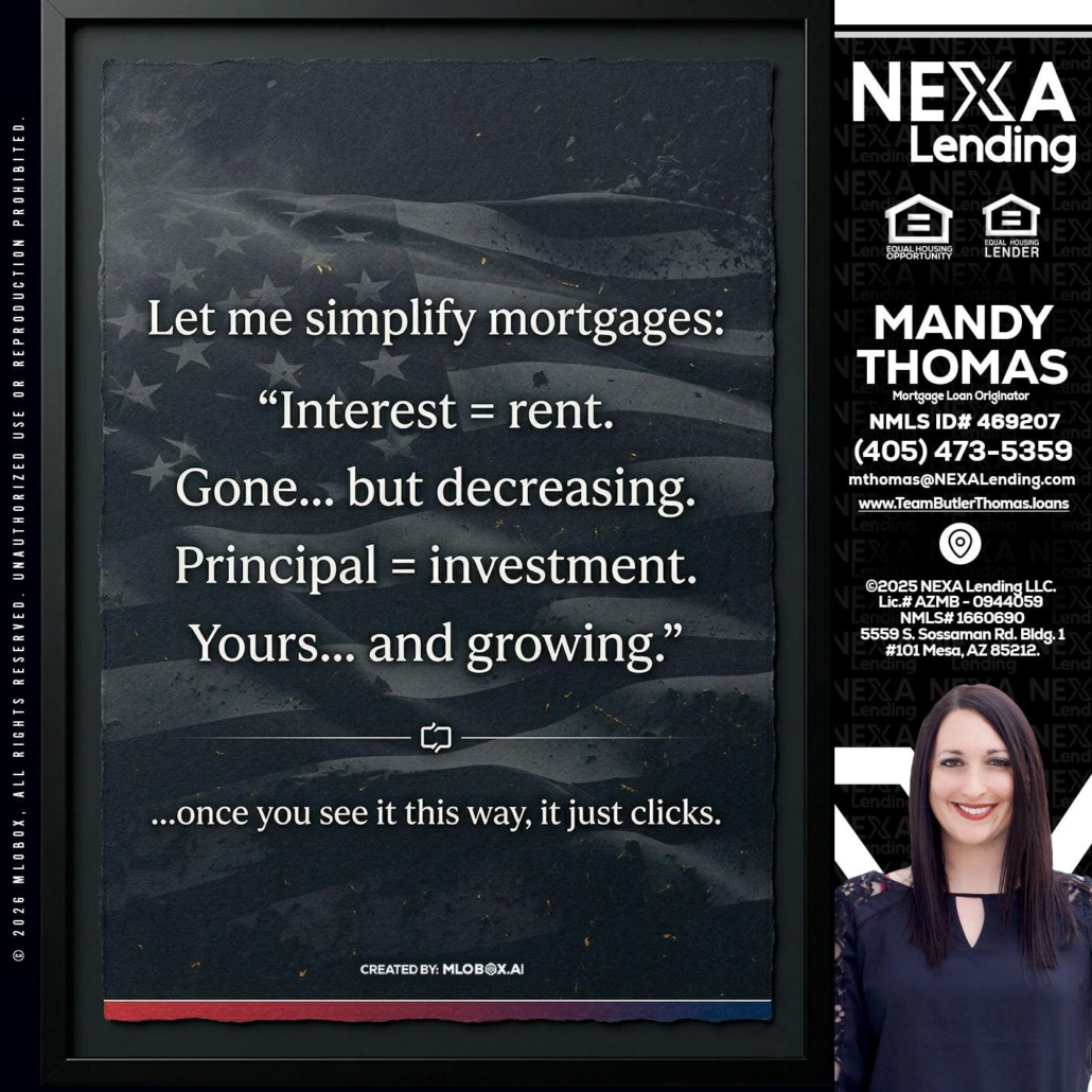 Hi, my name is Mandy Thomas. I’m a Loan Officer with NEXA Lending LLC., offering personalized mortgage solutions, fast customized quotes, great rates and service with integrity.