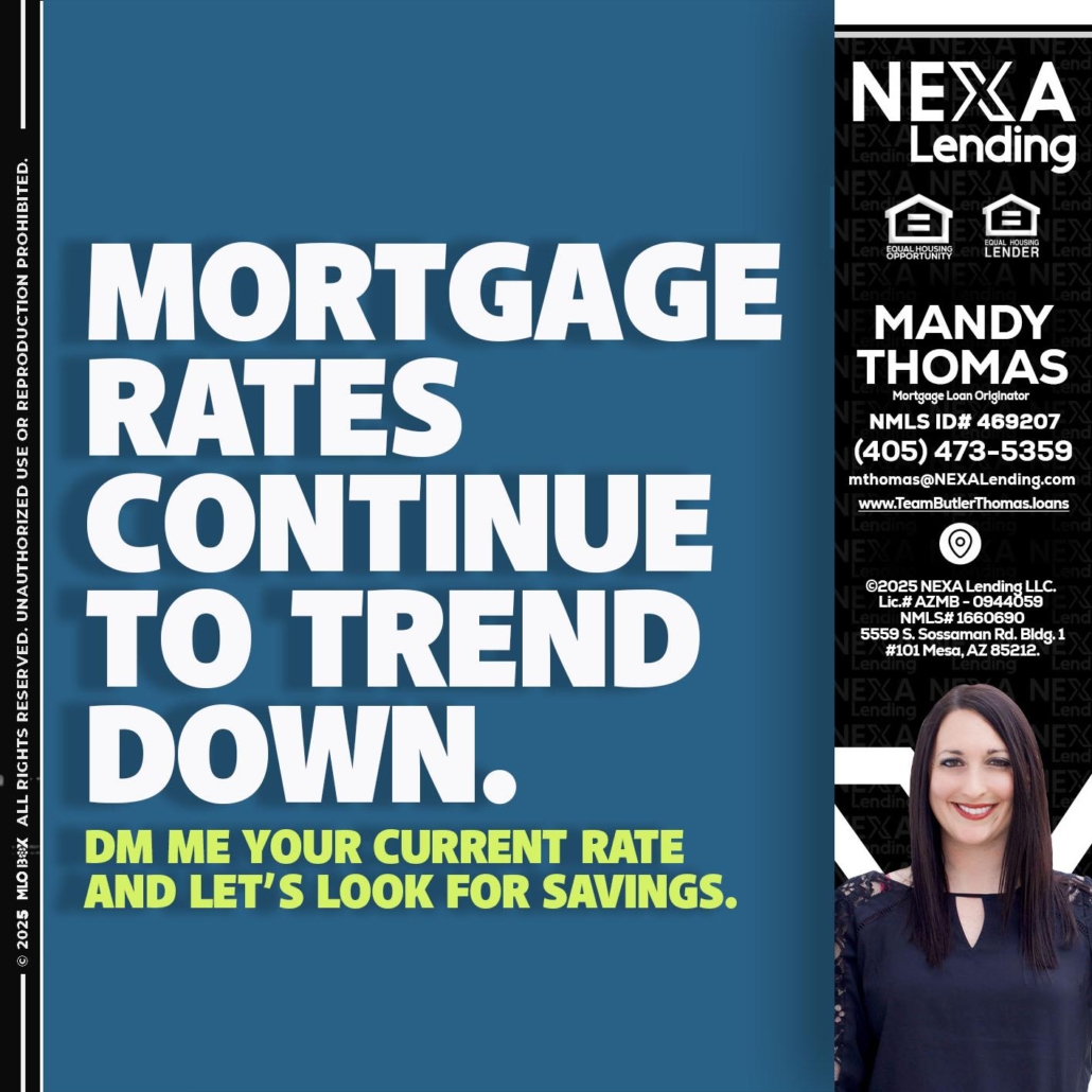 Hi, my name is Mandy Thomas. I’m a Loan Officer with NEXA Lending LLC., offering personalized mortgage solutions, fast customized quotes, great rates and service with integrity.