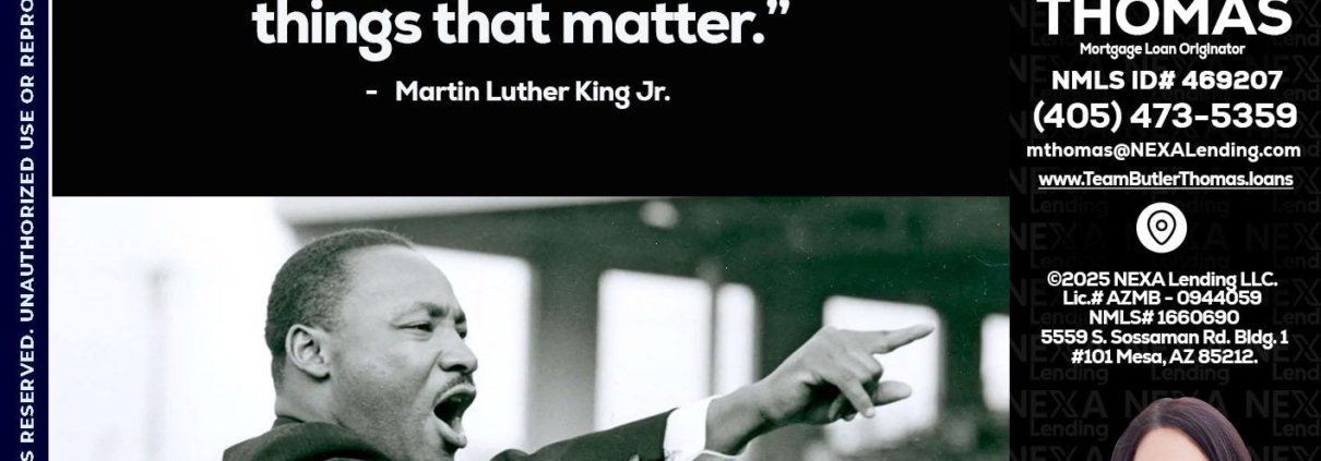 our lives MLK DAY - Mandy Thomas -Branch ManagerHi, my name is Mandy Thomas. I’m a Loan Officer with NEXA Lending LLC., offering personalized mortgage solutions, fast customized quotes, great rates and service with integrity.