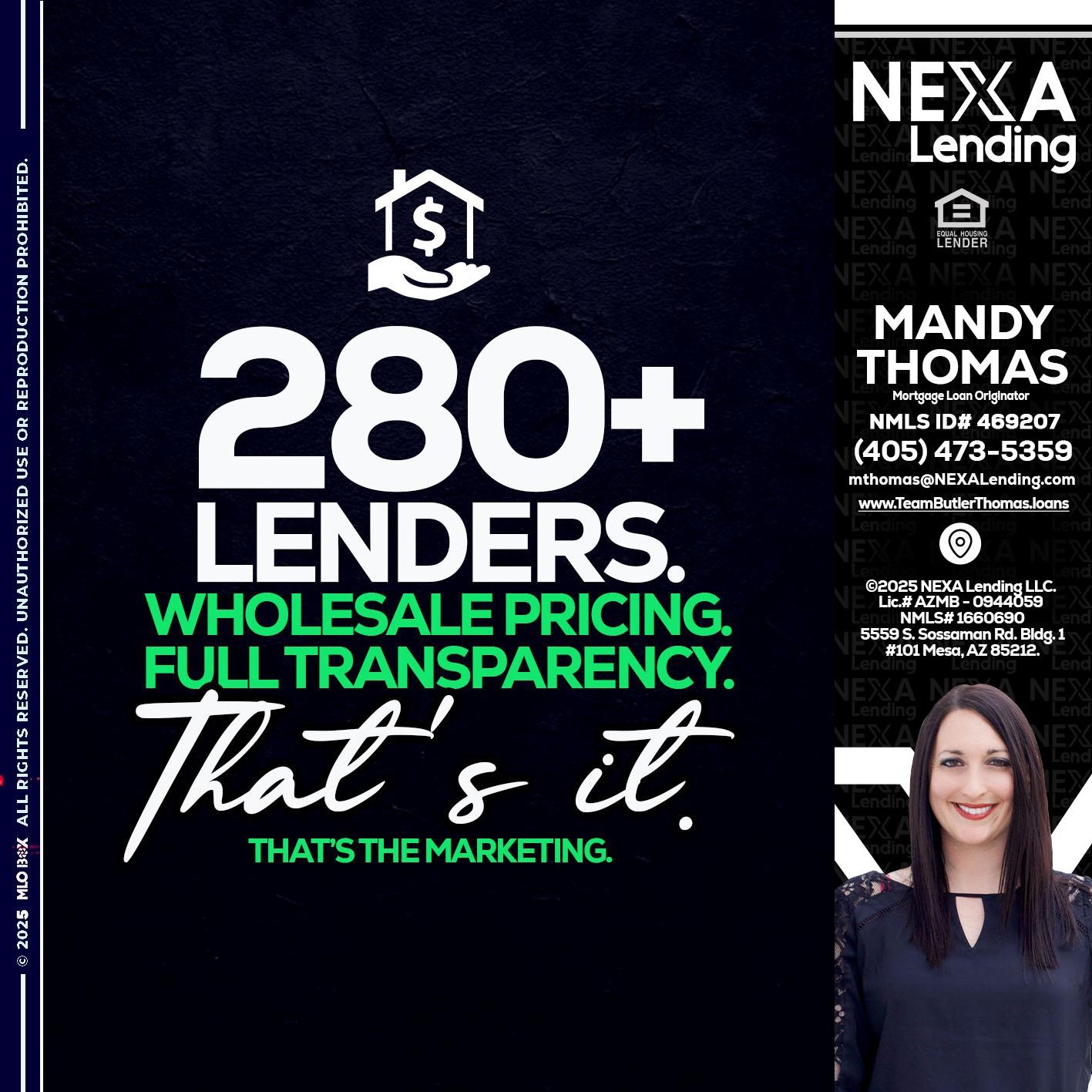 Hi, my name is Mandy Thomas. I’m a Loan Officer with NEXA Mortgage LLC., offering personalized mortgage solutions, fast customized quotes, great rates and service with integrity.